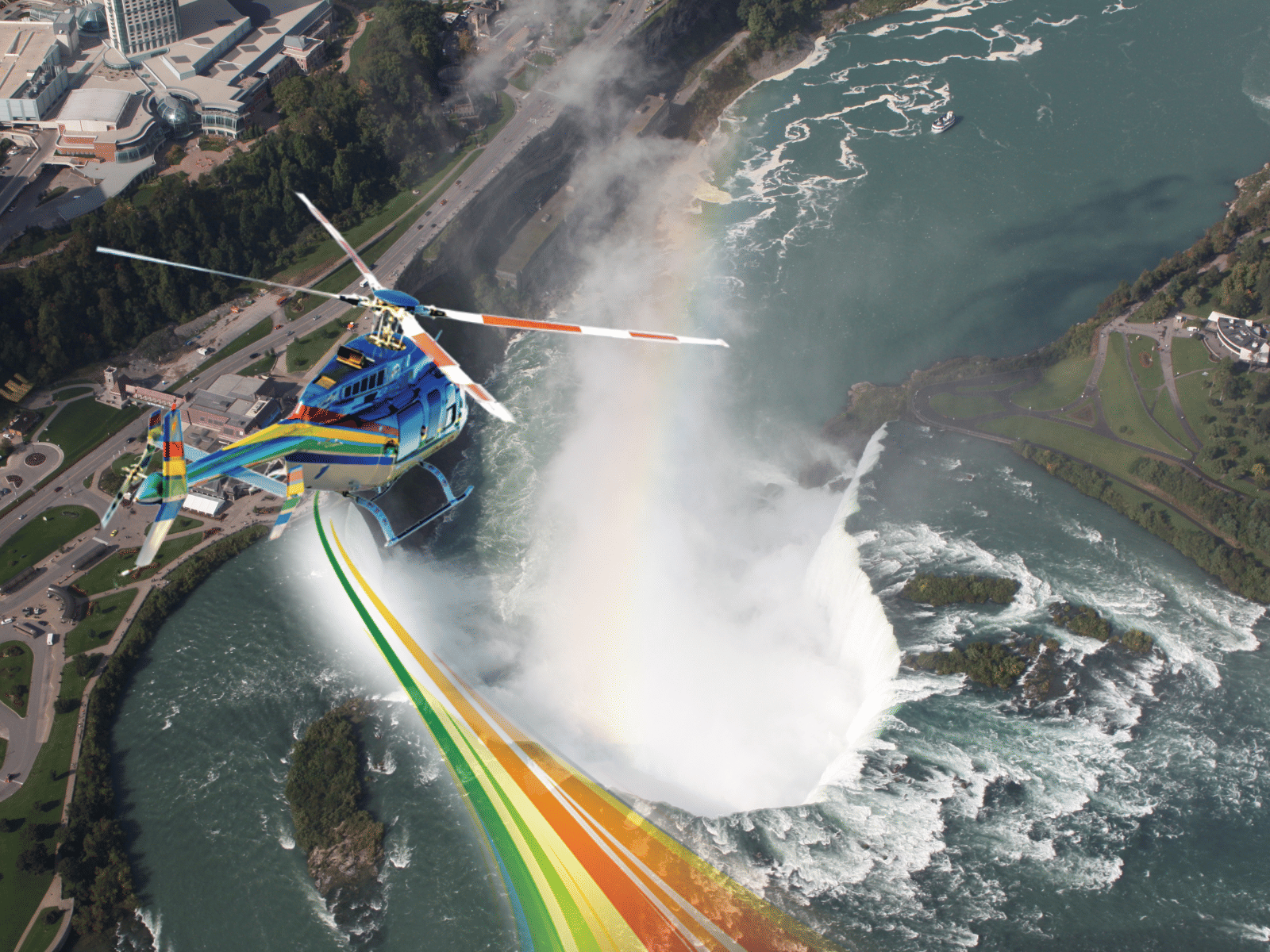 Helicopter rides over Niagara Falls & the Niagara River region. From the sensation of lift-off, to the excitement of soaring above the turbulent rapids and cascading waterfalls, your Niagara Helicopters ride is a unique and spectacular experience. Your all-scenic 12- minute flight gives you a thrilling view of Niagara’s natural and man-made wonders. Fly for the ride of a lifetime.