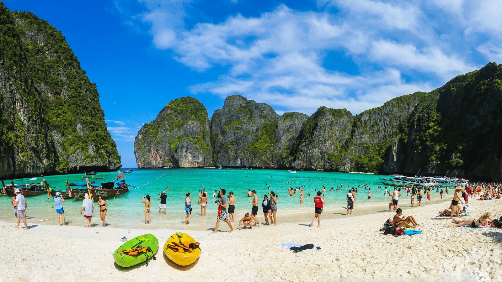 In this tour you will enjoy the exhilarating boat ride to beautiful locations of Thailand. Swimming in turquoise waters , snorkelling with beautiful coral and fish , and Maya beach which is simply paradisiacal.  Explore the picturesque and pristine beaches of Thailand's Phi Phi Don, Phi Phi Leh and Khai Islands on this exciting day tour from Phuket. These beautiful islands have plenty for you to photograph, discover, and explore, and their natural beauty will be sure to incite a sense of wonder in you.The Island is probably most famous for the Leonardo Di Caprio movie “The Beach”, which was set in the stunning Maya Bay located on the uninhabited Phi Phi Leh which is the second largest of the Islands.